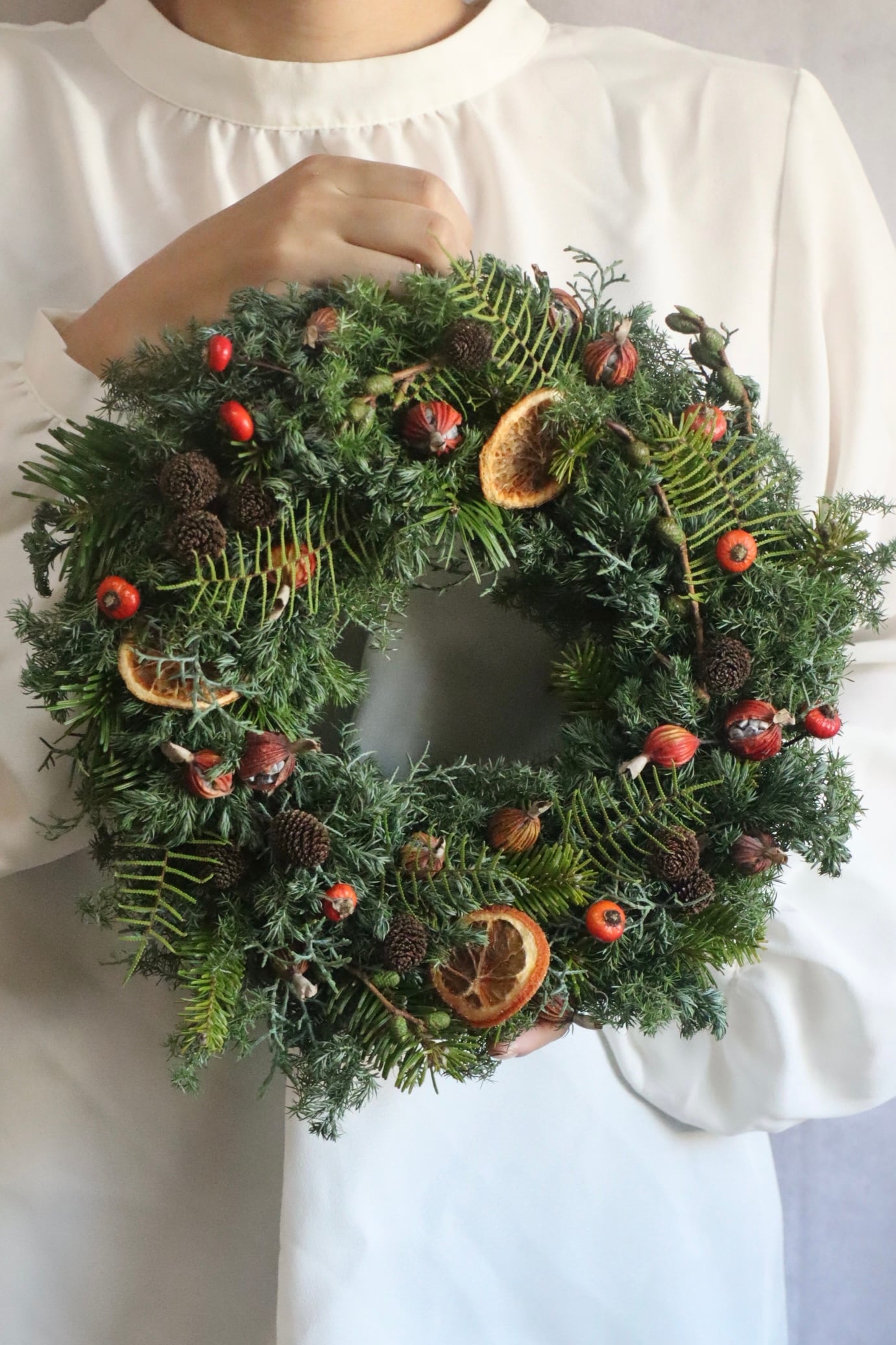ヒムロ杉やコニファー、フレッシュな針葉樹をふんだんに使ったクリスマスリースの花材や資材をご用意しており、