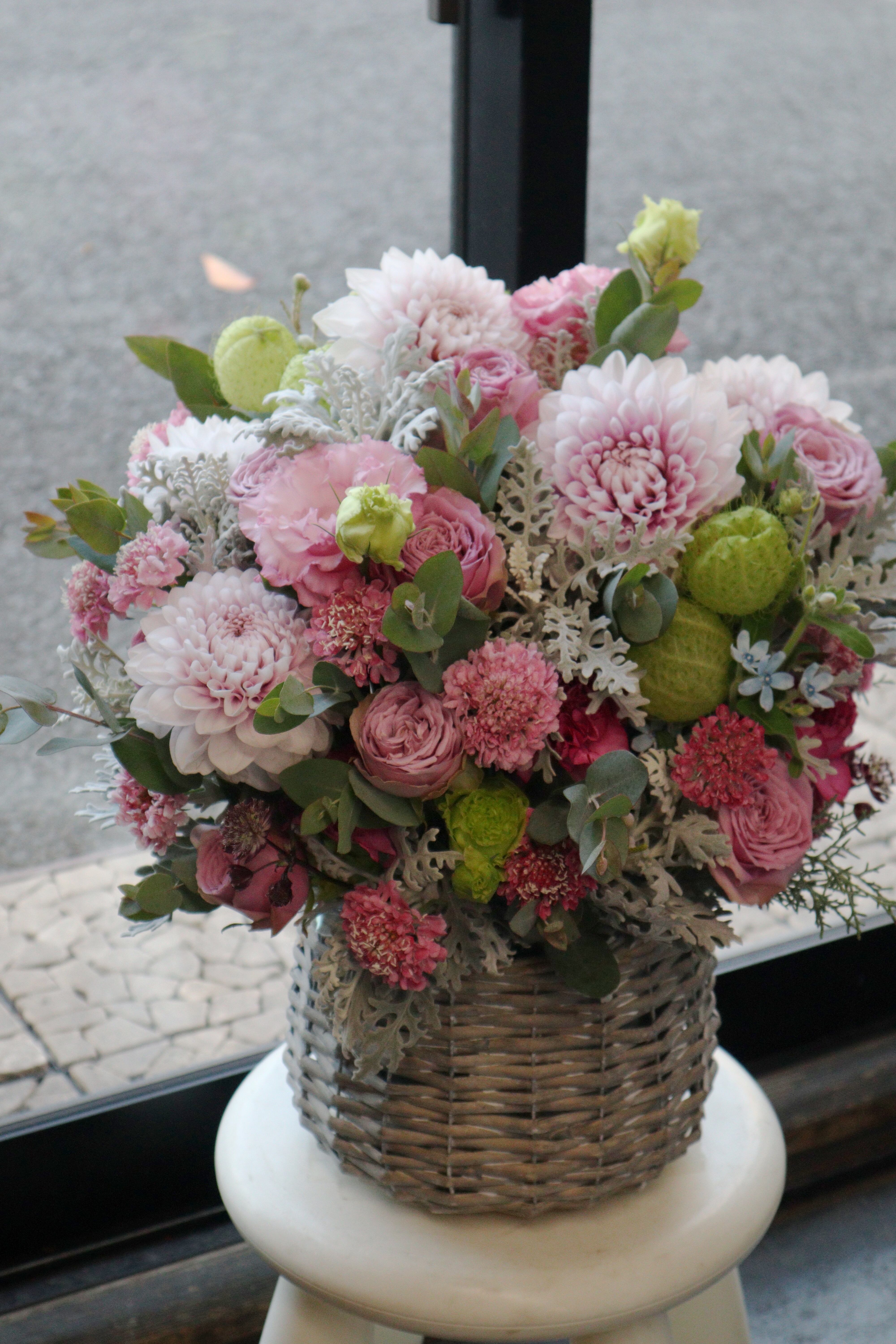 季節の花をはじめとしたその日のおすすめの花を直接目で見て仕入れてお作りします。